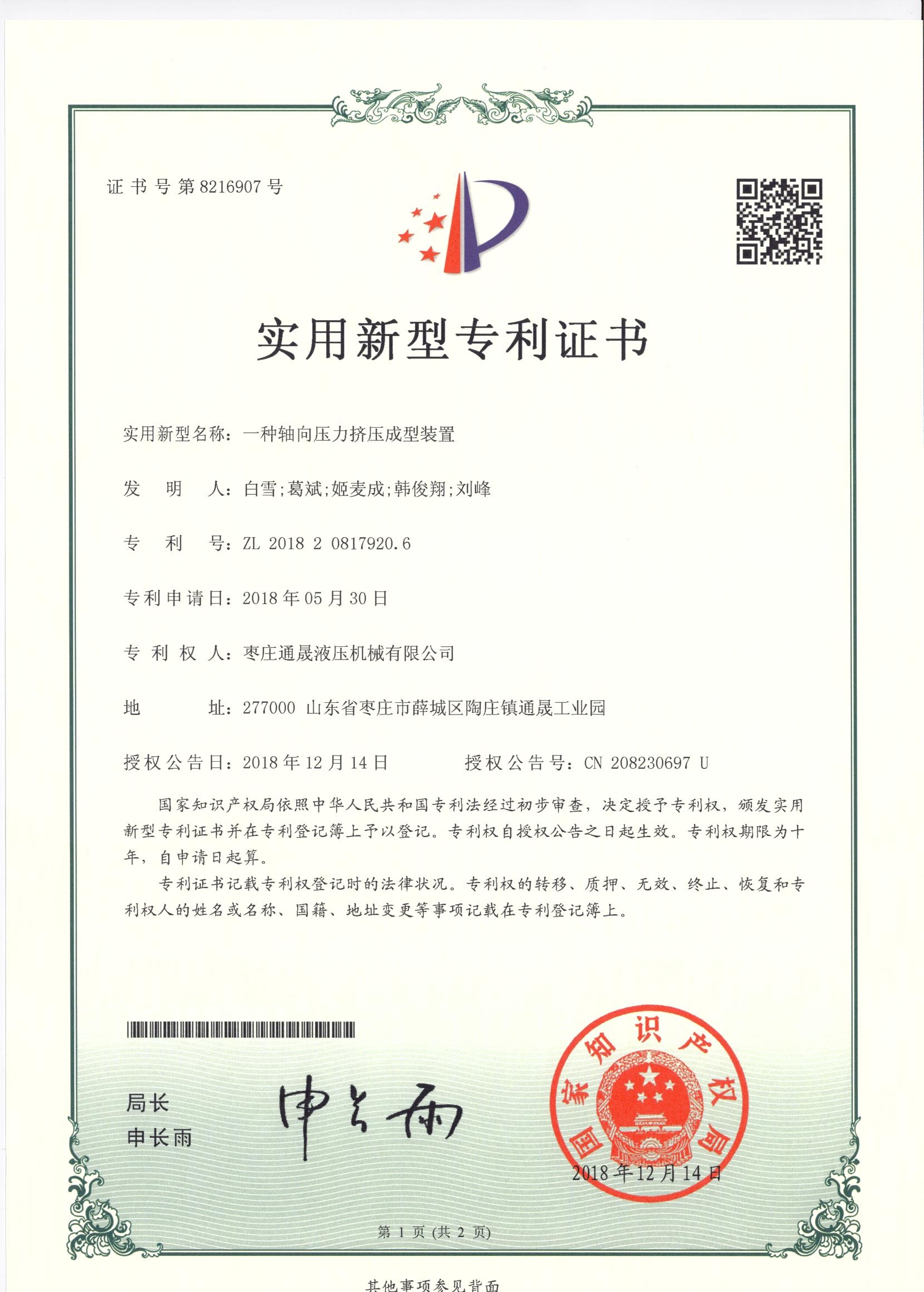 • 專利證書
